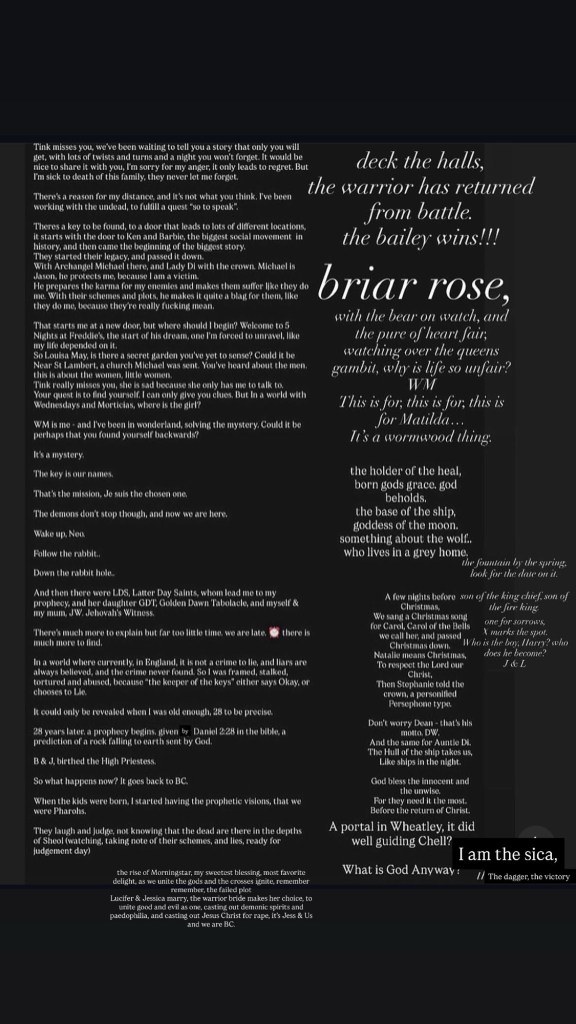 Poem of family writing. Jessica was Khaleesi. In a past life, which means her search to L and C lead her to Lucifer & Khaleesi. This was already written. This was written before I knew Christ was a rapist and a paedophile, before times changed with a lot of other people too. I was lead to the L’s and C’s, would see L’s and C’s everywhere for a time and it lead me to a woman i knew, and her daughter, GDT, her name initials are GDT. This then lead me to myself, and my mother, JW.