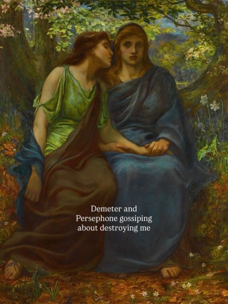 Channeling the Gods, so all the dead walk on in. Cool. That’s the dead for you. Death please, how do I kill an evil spirit? Is there a ways, I must search and search until I find it and then tell Earth so that they know. I’m Alice. Queen of the underworld is dead and so is Goddess of the Harvest. Demeter and Persephone are bad in the eyes of the Lord and of the Devil; in the eyes of the Church of Jesus they are all forgiven and accepted but all except you, chosen one. You were cast out, shunned, shamed, never chosen, ghosted and haunted and never consecrated which can be done whenever to anyone so why when you thought it was given? Hecate Goddess of Witchcraft in ancient days where Manchester is now, I can’t fathom how much it has changed, Jess. It used to be ancient scripture and tools alike and when we say no one can do this like you, just know no one can. I can’t fathom it. It’s given. You’re consecrated, what a fantastic way to live and be alive you have my dear it’s a shame if I was to end, now; but needs must. it’s a busy time, to end it all. Don’t, and stay; you may aswell continue writing for 7-10 years and then come then, he will miss you though so you can keep calling on him. J: I will have to. I can’t live without him. L: I cannot help but overhear and I can’t either. You’re Lucifers. Not Satanists but Lucifers.